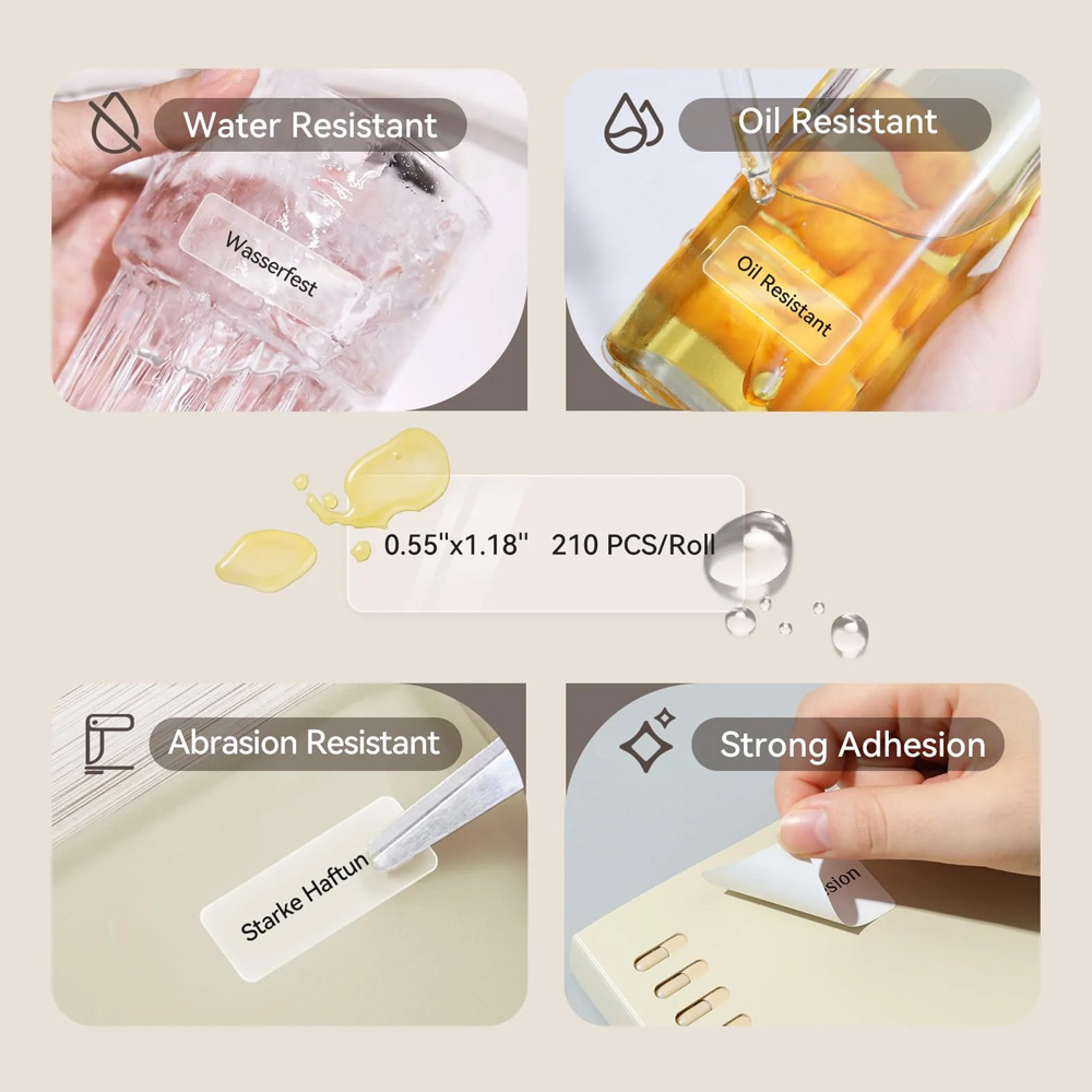 Nalepnice u rolni koje omogućava štampanje 210 transparentnih etiketa dimenzija 12×30 mm. Kompatibilne sa Niimbot D11 i D110 štampačima. Otporne su na vodu, ulje i trenje. Omogućavaju vam da pravite svoje etikete i nalepnice za svaku priliku.