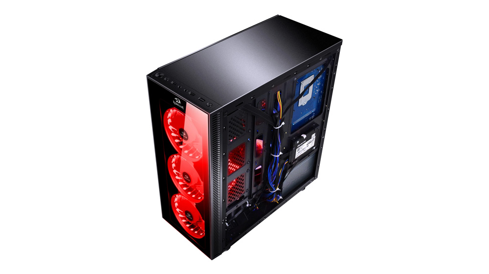 Redragon Sideswipe GC-601 gejmersko kućište ima tamnu poluprozirnu ploču od kaljenog stakla, a leva strana je od kaljenog stakla. Ima instalirana 4 ventilatora: 3 RGB ventilatora sa prednje strane i 1 RGB ventilator sa zadnje strane. Postoji mogućnost ugradnje još 3 dodatna ventilatora. Plastični delovi izrađeni su od plastike debljine 1,5 mm. Kućište ima 3 USB konektora (1 x USB 3.0 + 2 x USB 2.0).